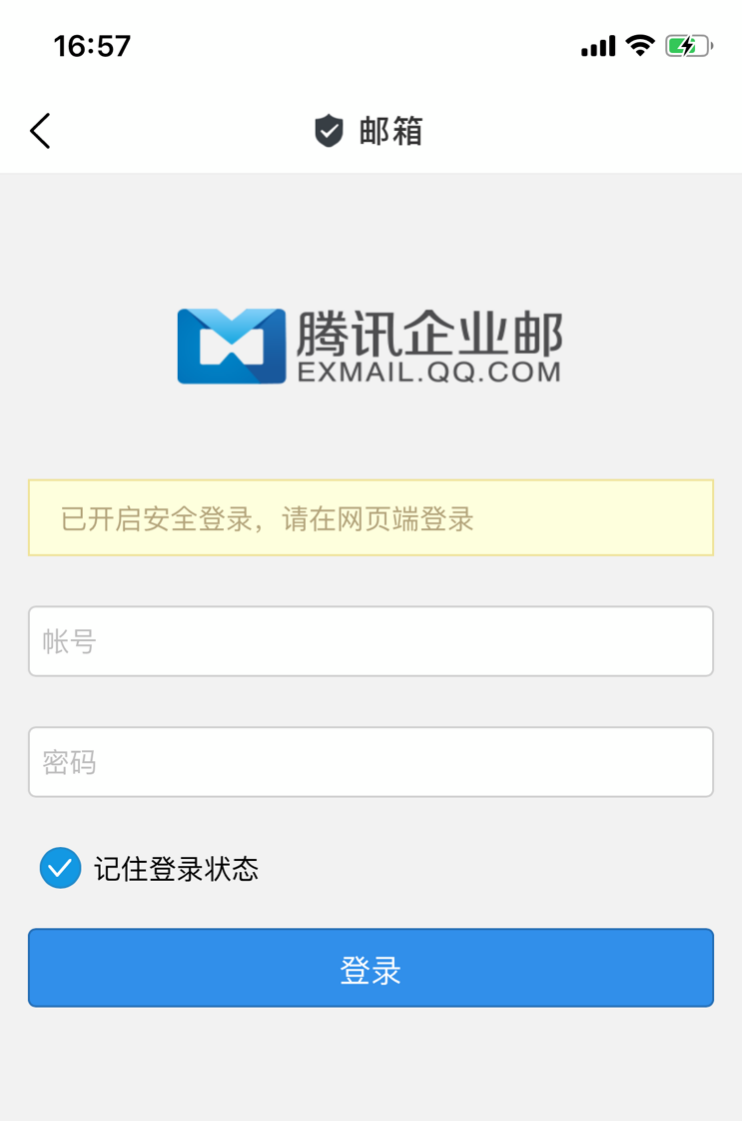 如果邮箱开启了安全登录,会导致手机端不能默认登录,界面如下,如果需要在今日校园内使用邮箱建议关闭安全登录。