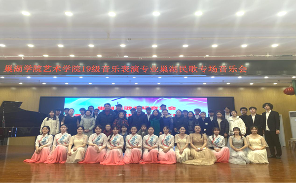 2021年1月5号晚上7点,艺术学院音乐多功能报告厅举办了一场“巢湖民歌专场音乐会音乐表演实践课改革成果汇报”演出。艺术学院院长杨松水、艺术教育中心陈建老师及音乐表演教研室教师观摩了成果汇报。