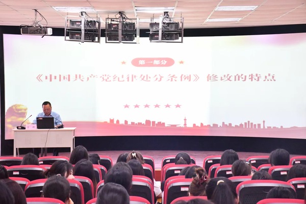 课上,管超围绕《中国共产党纪律处分条例》进行授课。他表示,2023年12月,党中央印发了新修订的《中国共产党纪律处分条例》(以下简称《条例》),这是党的十八大以来,党中央第三次修订《条例》,意义十分重大。随后,管超围绕“六大纪律”部分修订内容做了详细阐述,在政治纪律、组织纪律、廉洁纪律等各项纪律的具体条款中,处处体现了对党的二十大精神和党章的贯彻落实。他表示,作为入党积极分子和学生骨干要牢固树立纪律意识,要严格遵守学校和学院的各项规章制度,做到“有令必行,有禁必止”。