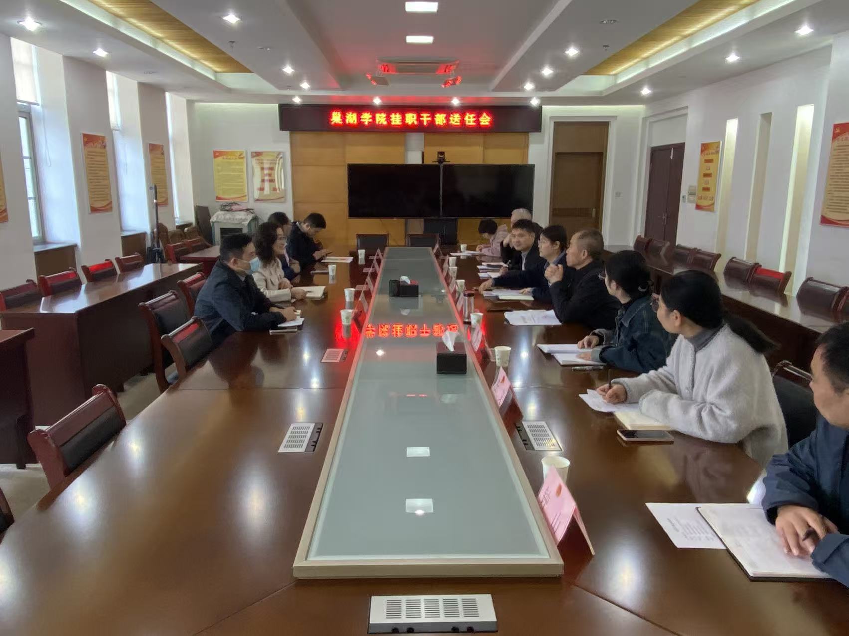 10月28日上午,Beat365唯一官方网站团委书记王倩、美术与设计学院党委书记古国平、学校党委组织部副部长邓其志一行赴巢团市委送任挂职干部。巢湖市直机关工委副书记、二级主任科员尹家兵,团巢湖市委书记陈红蕾,副书记储明熙、王家垚及机关部室负责人参加送任会。会议由陈红蕾主持。