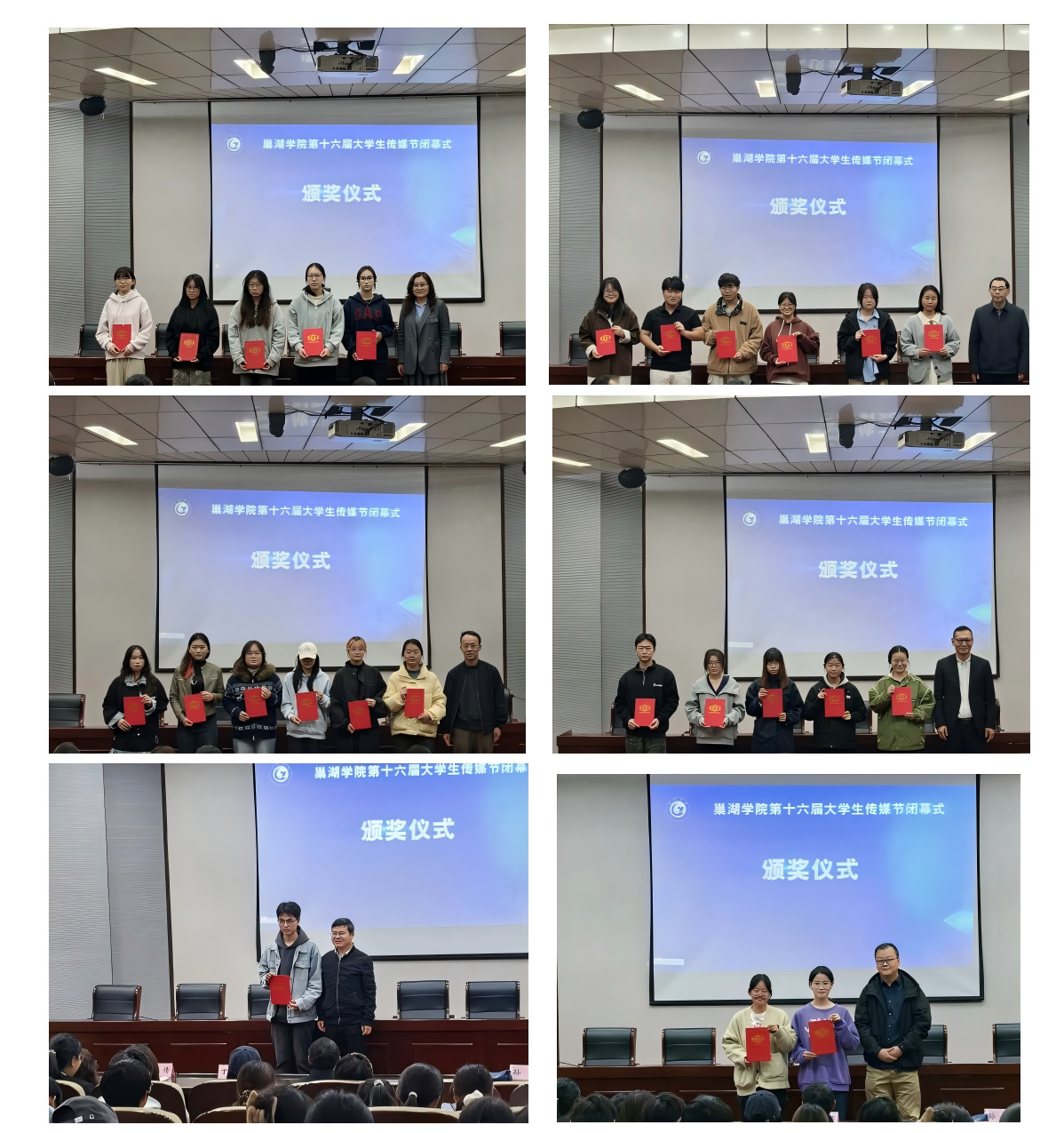 活动伊始,现场播放了本届传媒节系列活动回顾短片。视频中四个单元创意作品的精彩片段与师生协作的温暖画面依次呈现,生动展示了本届传媒节的青春风采。随后,与会领导为获奖学生颁发证书,与会师生一起见证了学子们在传媒实践中的收获与成长。