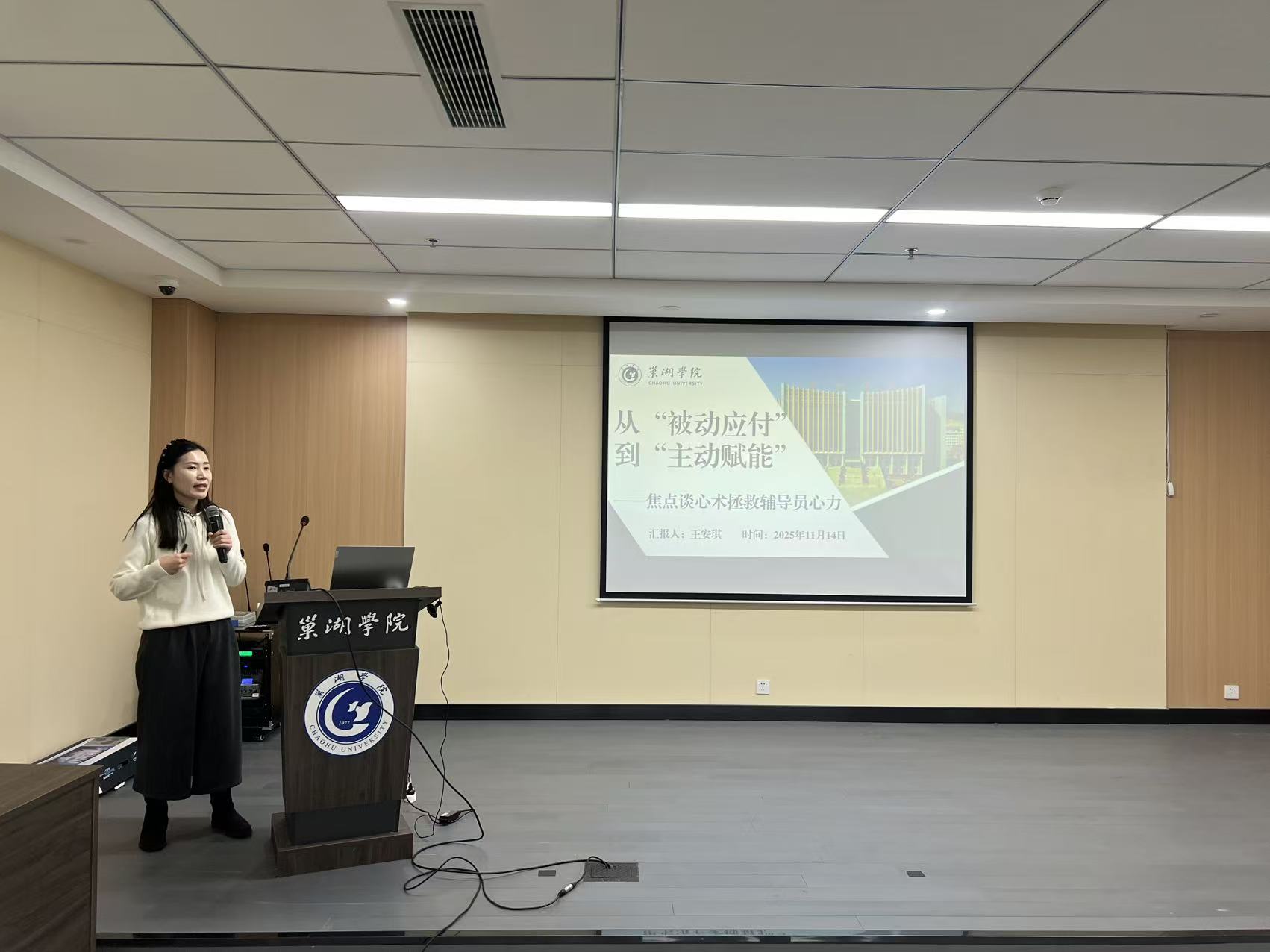 培训会上,王安琪以“从‘被动应付’到‘主动赋能’:焦点谈心术拯救辅导员心力”为主题,从三个方面系统讲解了焦点谈心术的应用逻辑与实操方法。她提出当前辅导员在学生谈心工作中常面临“24小时待机”“越努力越疲惫”等困境,而焦点谈心术正是通过“精准识别—焦点解决—预防守护”的闭环模式,帮助辅导员从“被动应对问题”转向“主动赋能成长”。