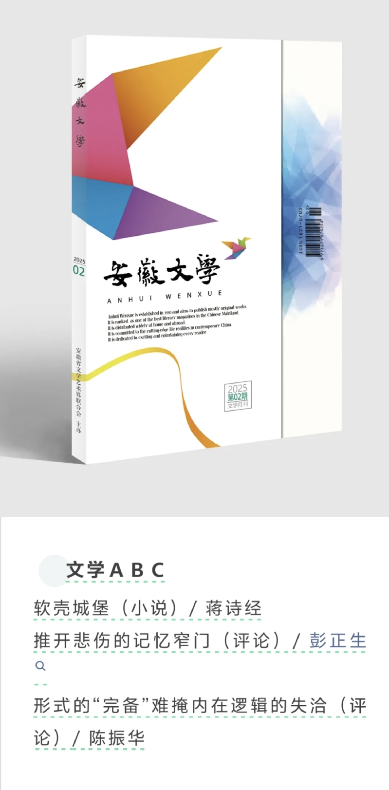 彭正生教授、陈振华教授在《安徽文学》2025年第2期分别发表题为《推开悲伤的记忆窄门》《形式的“完备”难掩内在逻辑的失洽》的评论文章。