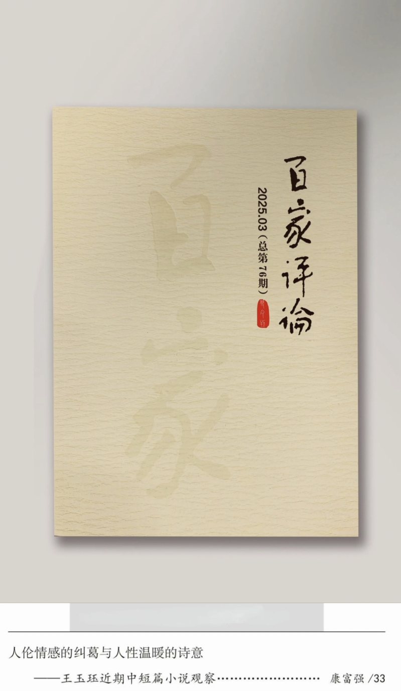 康富强在《百家评论》2025年第3期发表题为《人伦情感的纠葛与人性温暖的诗意——王玉珏近期中短篇小说观察》的评论文章。(文、图/康富强 初审/刘康凯 终审/彭正生 发布/康富强)
