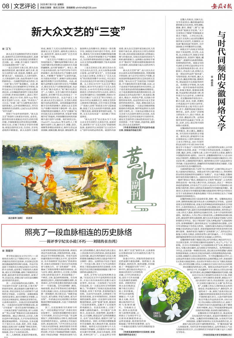 陈振华教授在《安徽日报》2025年7月11日第8版发表题为《照亮了一段血脉相连的历史脉络——简评季宇纪实小说<不朽——刘铭传在台湾>》的评论文章。(文、图/康富强 初审/刘康凯 终审/彭正生 发布/康富强)