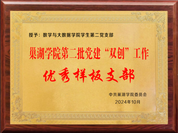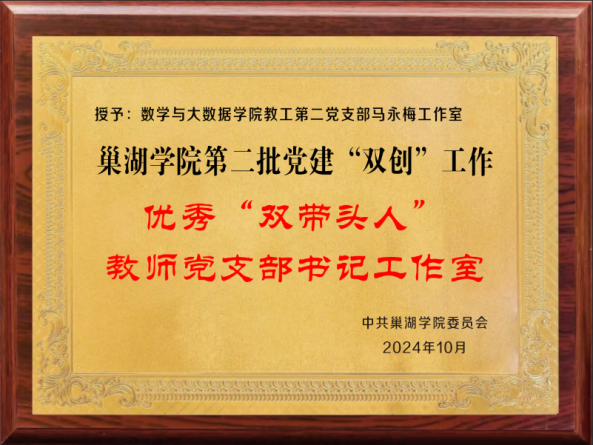 数学与大数据学院始终坚持以高质量党建引领高质量发展,形成“134”大思政育人工作机制,即围绕“一个中心”(党建引领发展),坚持“三个融合”(党建+育人、党建+科研、党建+学科),实现“四个提升”(提升人才培养质量、提升科学研究水平、提升学科建设水平、提升服务地方能力)。学院积极开展基层党组织建设质量提升专项行动,坚持以基层党组织标准化建设为抓手,充分发挥基层党组织政治功能和组织功能,实现了党组织政治引领作用进一步发挥、党内组织生活进一步规范、党务工作者履职能力进一步提升、师生党员先锋模范作用进一步提高、党建特色品牌进一步凸显等“五个进一步”的目标。学院党委获批“先进基层党组织”,5个党支部实现星级党支部全覆盖,3个党支部通过校级党建“双创”立项建设验收,1个党支部获批教师党支部书记“双带头人”工作室。10余人获得“安徽省高校优秀共产党员”、校级“两优一先”荣誉称号。2024年10月,在校级第二批党建“双创”“421工程”结项验收评审中,两个立项项目均获得“优秀”等次,其中教工第二党支部马永梅工作室获得“双带头人”教师党支部书记工作室评比最高分,学生第二党支部获得样板支部评比学院类最高分。