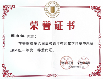 数学与大数据学院始终坚持“为党育人,为国育才”,努力实现人才培养质量、科学研究水平、学科建设水平、提升服务地方能力等“四个提升”,强化师资队伍建设,建强教学质量保障体系,为推进教育教学改革创新,全面提升学生培养质效打下坚实基础。近五年来数学与大数据学院教师获省教学成果奖特等奖、一等奖、二等奖共3项。学院通过开展课程思政教学比赛、青年导师制、教学督导、教学团队建设、课程团队建设等活动提升教师的教学能力。周康妹老师在2023年安徽省第六届高校青年教师教学竞赛中荣获理科组一等奖;马永梅教授在2024年第四届全国高校教师教学创新大赛安徽赛区获得基础课程正高组一等奖好成绩。