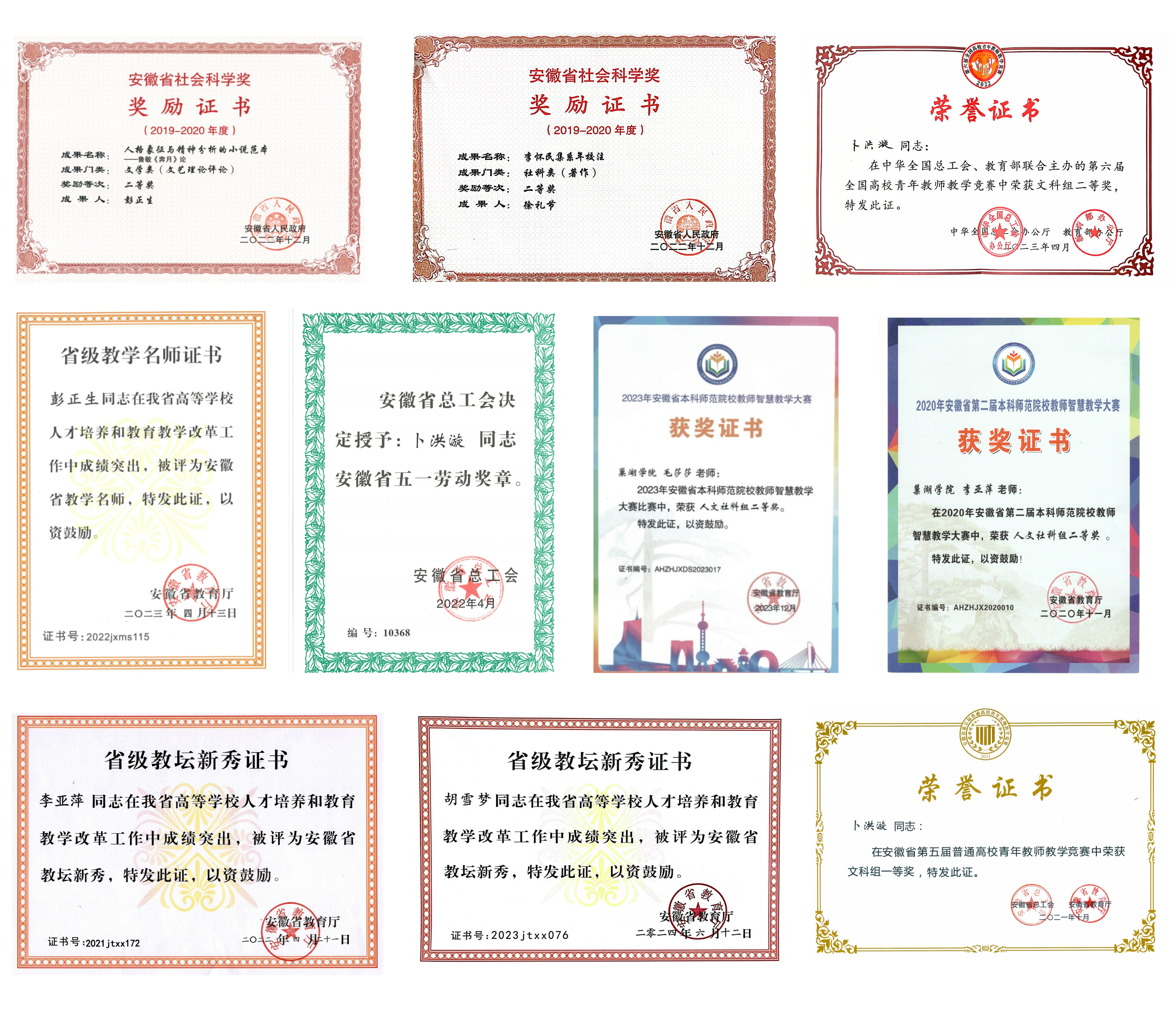 学院致力于打造高水平教师队伍服务学生成长成才。现有安徽省教学名师2人,安徽省模范教师1人,安徽省教坛新秀7人,安徽省“五一劳动奖章”获得者1人,安徽省教学创新团队2个。近三年,引进教授2人,引进青年博士15人,晋升高级职称8人,晋升教授二级1人。1人获安徽省“五一劳动奖章”,1人获全国高校青年教师教学竞赛二等奖,1人获安徽省本科师范院校教师智慧教学大赛二等奖,3人获全国高校教师教学创新大赛安徽赛区三等奖。同时,学院广泛聘请专家学者、知名作家、资深媒体人等担任客座教授、兼职教授和兼课教师,教师队伍总体结构不断改善,教师队伍综合能力不断增强。