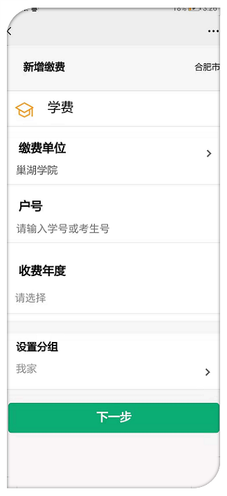 进入缴费页面后,按照要求输入学号及收费年度,点击“下一步”。