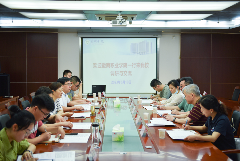 6月19日上午,徽商职业学院财务处处长吴畅怀、资产管理处处长占世向等一行来我校调研交流。财务处和国资处主要负责人和相关人员参加会议。会议由财务处处长刘亚平主持。