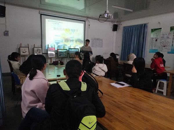 12月1日晚,大学生创业孵化基地入驻项目“戈雅画室”在园区培训教室为美术爱好者举办了一场艺术鉴赏课。课程由项目负责人赵兴明讲授,约30名美术爱好者参与。