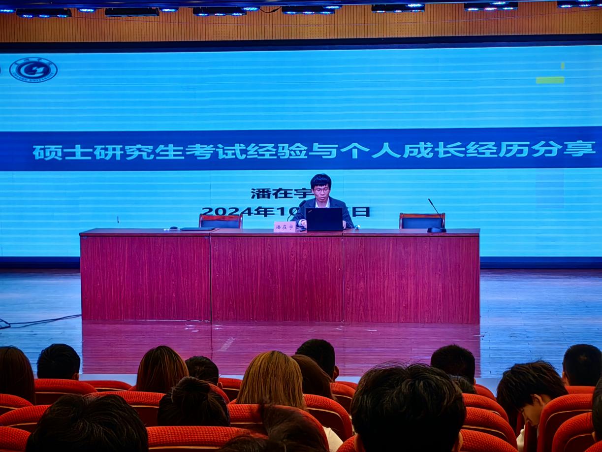 2024年10月16日下午,电子工程学院在教师教育学院音乐报告厅举办优秀校友报告会。本次报告会邀请了2016届电气工程及其自动化专业优秀校友潘在宇主讲,分享会由学院副书记刘雪刚主持,学院就业联络员吴远军和2022级、2023级电气工程及其自动化专业有考研意向的学生与会。