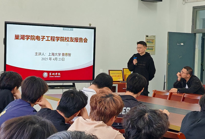 4月23日下午,电子工程学院在致知楼二楼会议室举办优秀校友报告会,特邀上海大学青年博士、2014级电气工程及其自动化专业校友曹恩智返校分享。2023级电气工程及其自动化专业同学与会,报告会由辅导员牛可萌主持。
