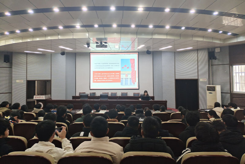 12月7日中午,电子工程学院团委副书记孙一帆、21级汉语言文学一班凤雅洁和20级法学一班程昭君同学于致知楼报告厅宣讲党的二十大精神,电子工程学院全体入党积极分子参与。