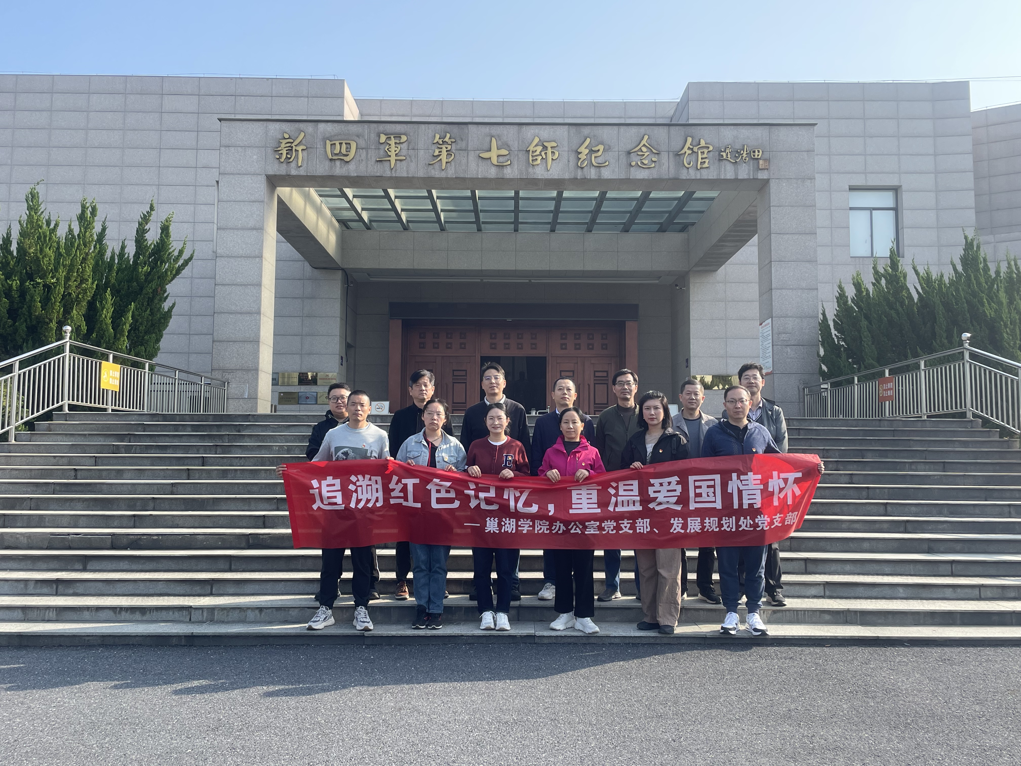 为缅怀革命先烈,传承红色精神,进一步深化党性教育,巩固党纪学习教育成果,11月2日,办公室党支部、发规处党支部联合赴无为市新四军第七师纪念馆、巢湖市散兵镇大岭村开展“追溯红色记忆 重温爱国情怀”主题党日暨工会小组活动。