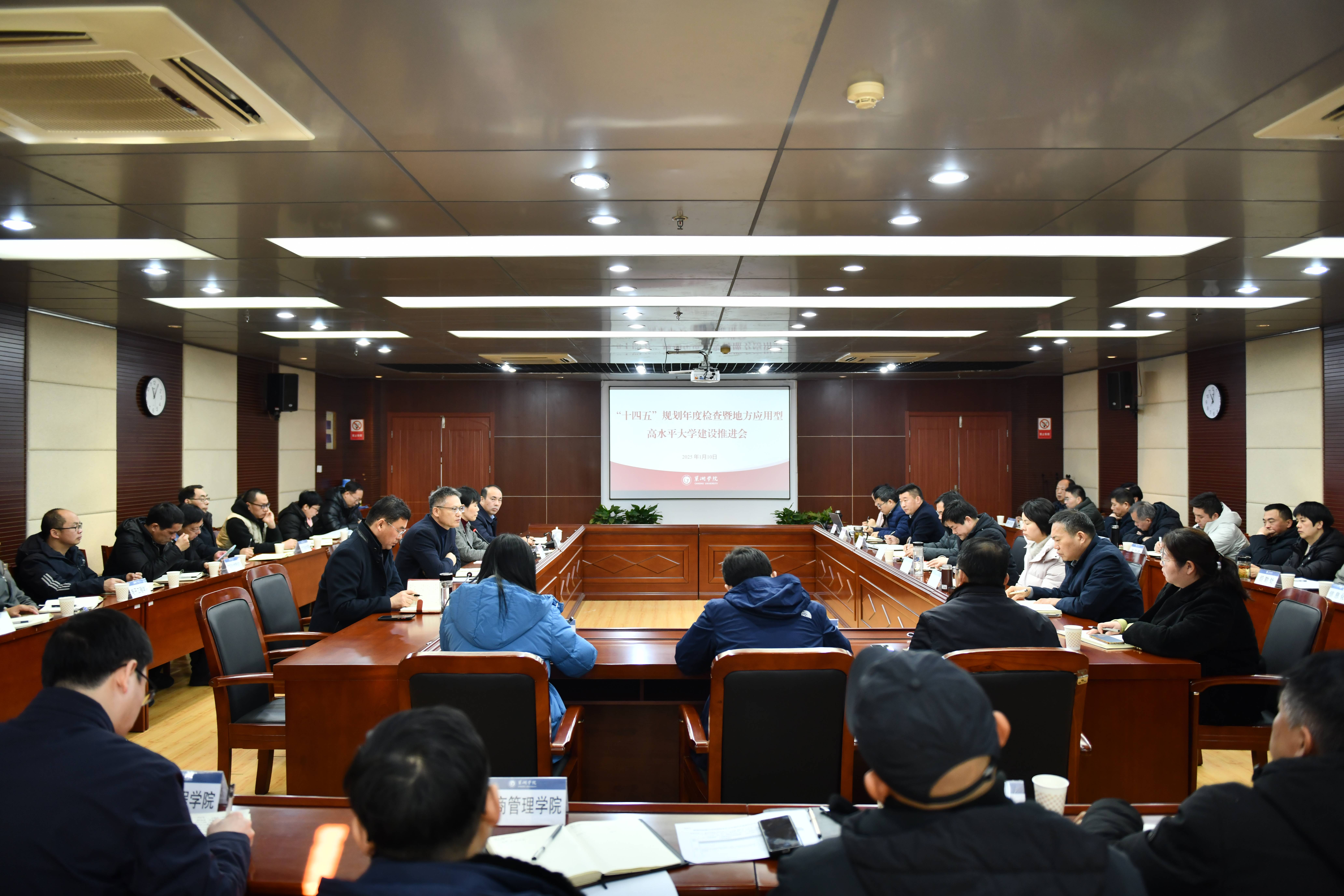 为全面梳理总结“十四五”规划和地方应用型高水平大学建设任务执行情况,谋划并推进2025年学校重点工作,1月10日上午,学校在第二会议室召开工作推进会。校党委书记周峰,党委副书记、校长张莉,党委副书记宋立敏,党委委员、副校长丁俊苗出席会议,各职能部门主要负责人,各二级学院党政主要负责人参加会议。会议由张莉主持。