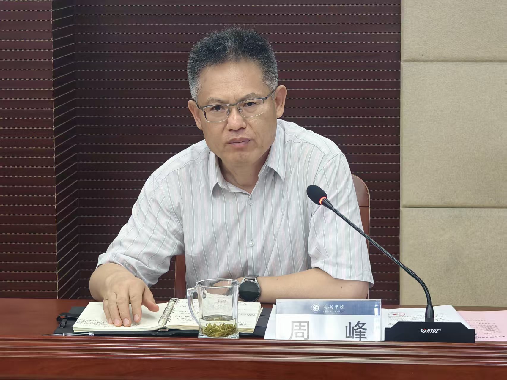 周峰在讲话中充分肯定了学校“双特色”建设取得的成绩及其前期所做工作,指出了目前仍存在的短板和不足,点明了学校发展的核心任务,并就做好建设工作作出强调:一是统一思想,坚定推进应用特色高校建设。聚焦特色发展不仅关乎学校长远发展,更是学校在激烈竞争中立足的根本、生存的需要,要找准重点发力建设的学科,围绕产业链深度调整学科专业结构,实现错位特色发展。二是凝心聚力,坚定不移走产教融合之路。紧紧围绕省十大新兴产业和“6178”现代化产业体系,加快构建与之相匹配的学科专业体系,通过大力推进产业学院建设、深化校企合作和推行特派员制度等举措,促进学科链对接产业链,逐步形成具有自身特色的学科专业集群,实现交叉融合差异发展。三是深化改革,坚定不移审慎推进,先立后破。应用特色必须深度思考,要集群体智慧力量发展特色学科,先谋而后动,找准定位,找准学校重点发展的特色学科专业,敢想敢创,闯出一条特色之路,并齐心协力,奋发有为,确保特色建设取得显著成效。