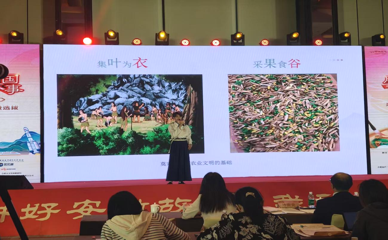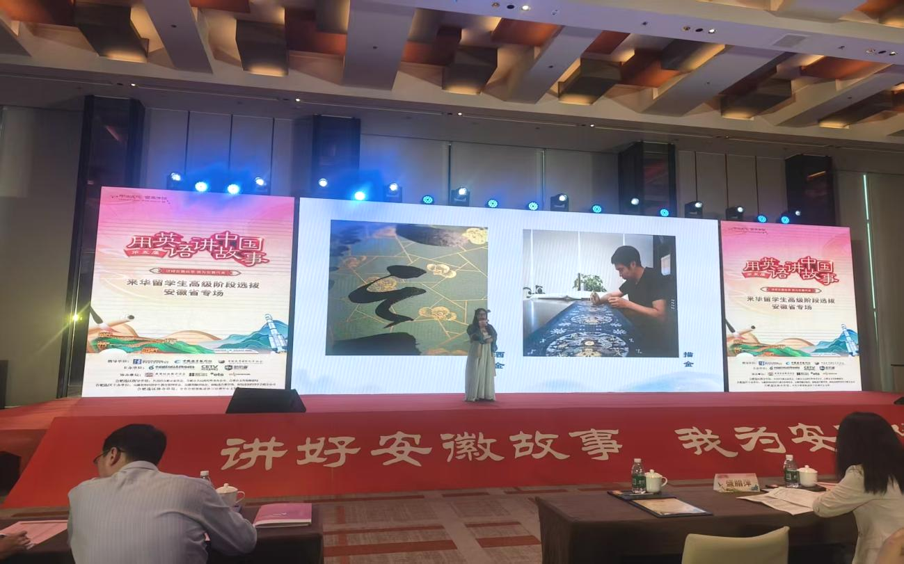 在这次大会上来自苏丹的留学生范蕊深情地描绘了巢湖的湖光山色,从姥山岛文峰塔到“巢湖三鲜”,从珍稀鸟类的栖息地到湿地治理的成果,展现了生态与人文的和谐共生,并以朗诵《相信未来》传递了文化共鸣和对未来的美好期望。蒙古籍留学生安蜜生动介绍了粉蜡笺的制作工艺,从染色、填粉到施蜡、砑光,详解这一融合吸水与防水特性的古法技艺,并强调巢湖非遗传承人对洒金银、描金等工艺的创新复兴。在才艺展示环节,她以脱口秀的形式幽默地解析了中蒙文化差异,生动地展现了她的跨文化理解力。老挝籍留学生黄阳则聚焦于华夏人文始祖有巢氏,通过“构木为巢”的智慧和集叶为衣的创举,阐释了有巢氏对人类文明的奠基意义,并以一曲中文歌曲《童话》传递了友好情谊。