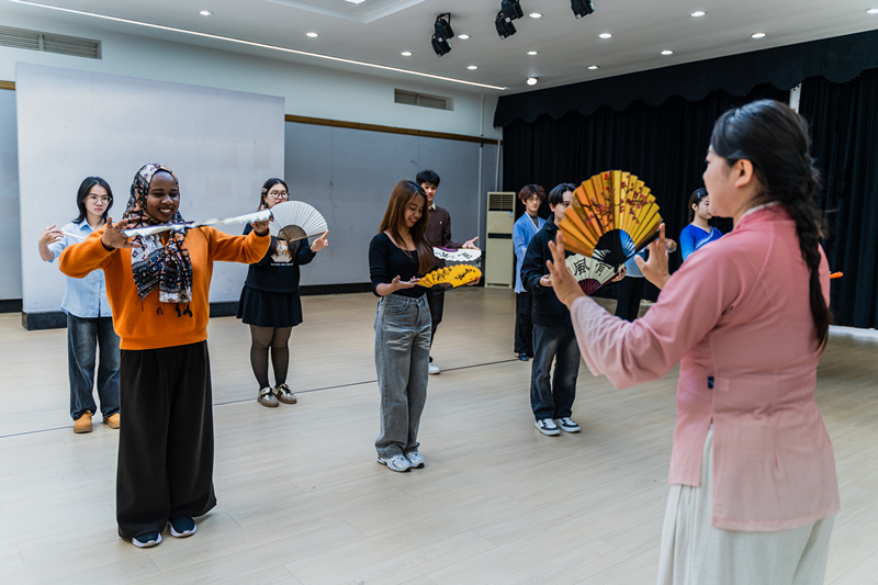 为促进中外学生文化交流,深化美育实践,11月12日下午,由教师教育学院和国际交流与继续教育学院共同主办的“艺汇中外韵动校园——中外美育艺术文化交流沙龙”在学院西侧广场举办。活动吸引了本校国际留学生与教师教育学院部分师生共同参与,在古典舞、民族乐、地方民歌的浸润中,参与者展开了一场跨越文化的美学对话。
