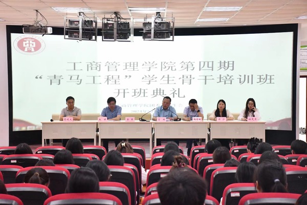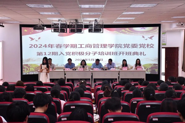 5月13日,工商管理学院在博学楼3D导游室举办了2024年春学期入党积极分子培训班暨第四期“青年马克思主义者培养工程”学生骨干培训班。党委书记管超,党委副书记、院长陶有田,党委副书记、纪委书记金晶,副院长赵祺,团委书记许沙,团委副书记储岚霖,全体学员参加开班典礼。学院兼职组织委员葛晓龙主持开班。