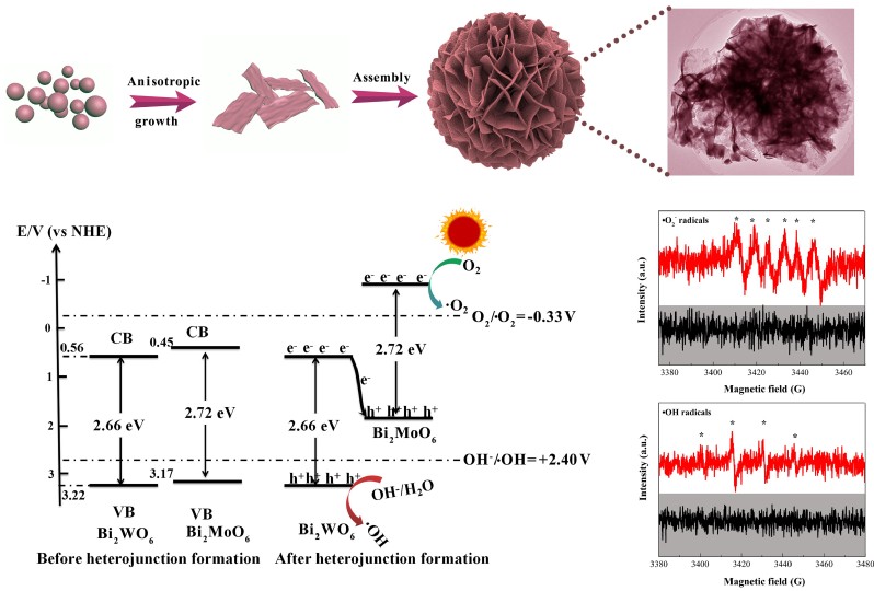 (2)高效粉末光催化剂。研究异质结粉末光催化剂的组成、微观结构对异质结构能隙宽度、能带位置、能带弯曲等方面的影响,探索其在光催化/光电催化分解有机污染物、去除高毒性重金属离子、光分解水制氢等方面的内在机制。