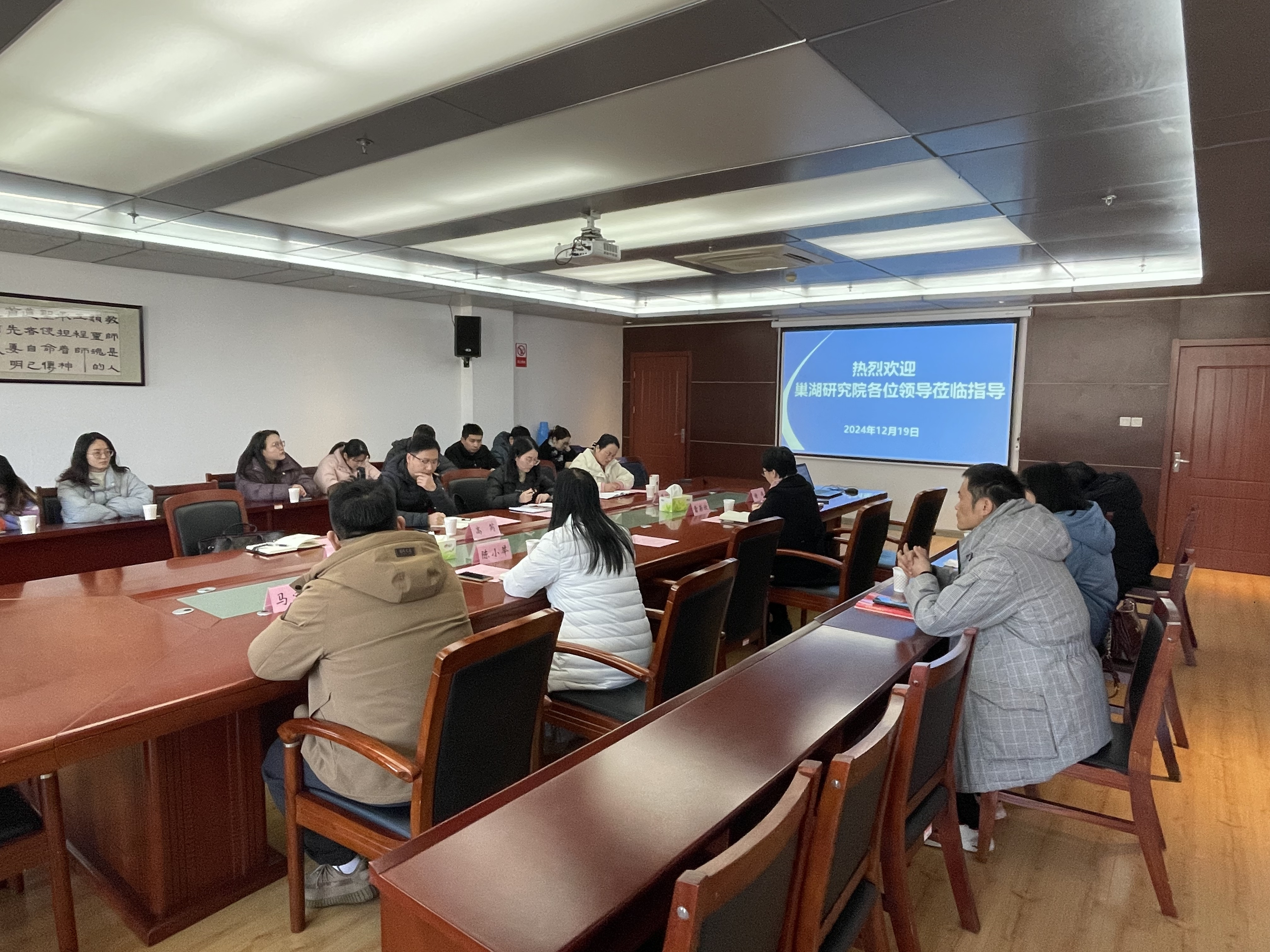 12月19日上午,巢湖研究院总工程师高芮、综合部部长李博、科研管理部部长韩琦、技术集成部工程师王怡慧等一行20多人来校开展合作交流。环巢湖中心副主任雷若欣及其相关学院研究员参加交流座谈会。会议由雷若欣主持。