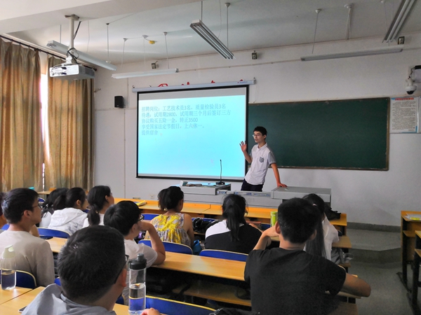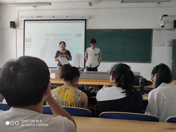 6月29日上午,化学与材料工程学院邀请安徽鑫磁源磁业有限公司在博学楼106教室举行实习宣讲,无机非金属材料工程专业2016级全体学生参加。