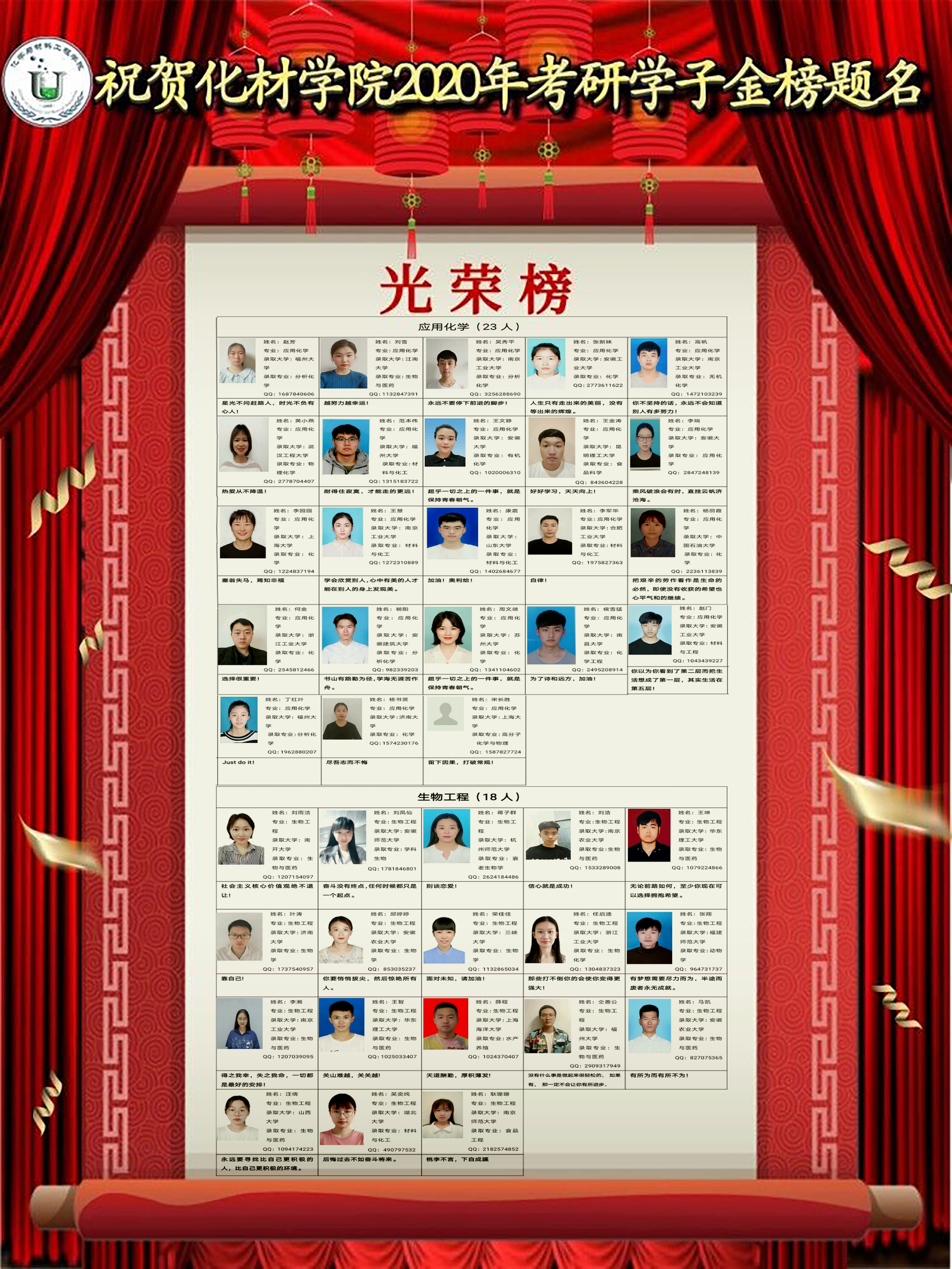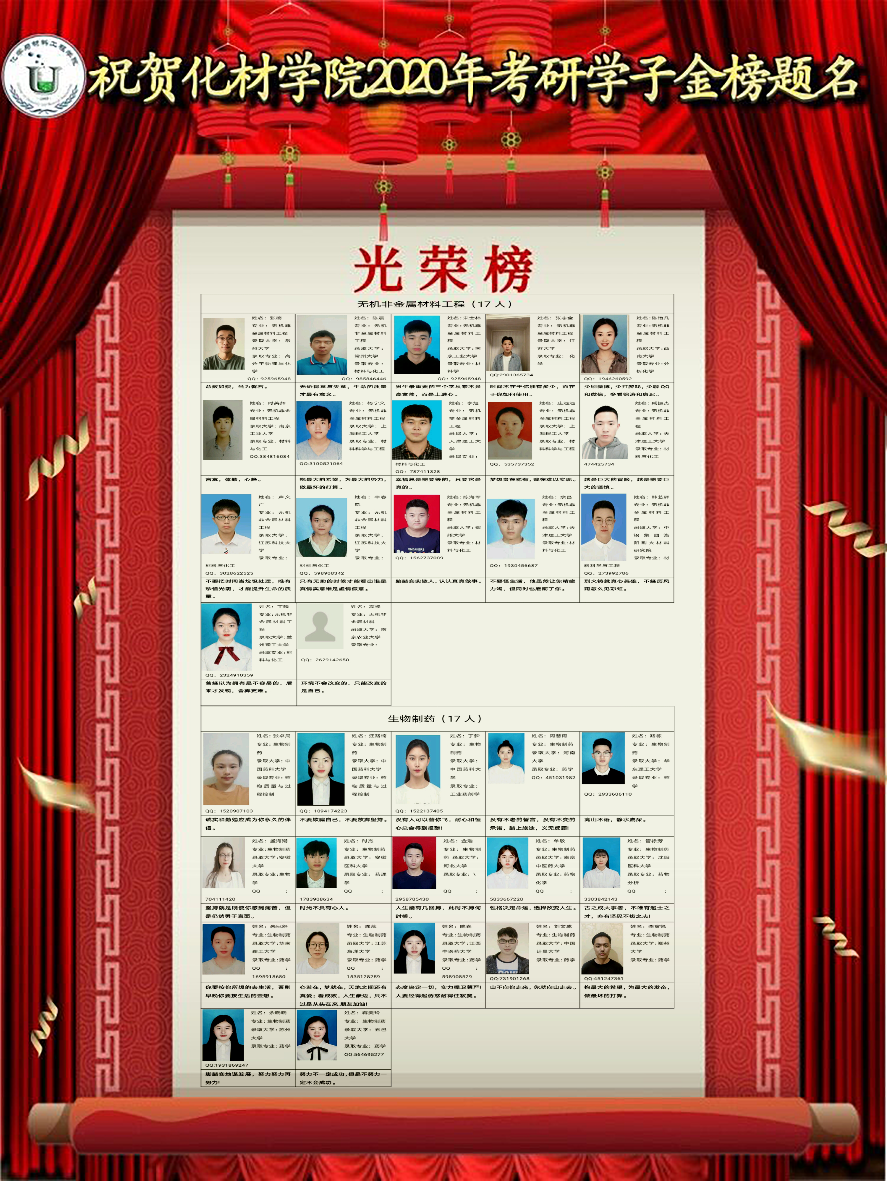化材学院2020年考研学子上榜简介、寄语