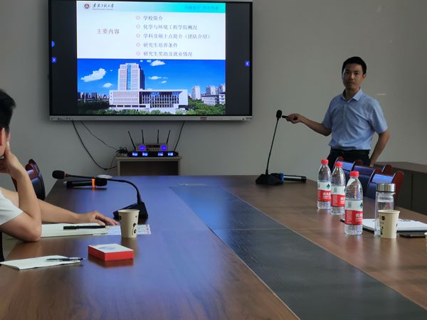 首先,徐大勇向与会人员简要介绍安徽工程大学校史沿革和化环学院的发展情况,重点介绍了学科及学位点情况、科研团队及研究生培养成效,并欢迎同学们积极报考化环学院。随后,王小东从专业发展、人才培养、师资队伍、科学研究和社会服务五个方面简要介绍了化材学院的发展现状。双方就硕士点联合培养、硕士点建设等方面的相关问题进行了深入交流。(文、图/蔡昌武 审/王小东)