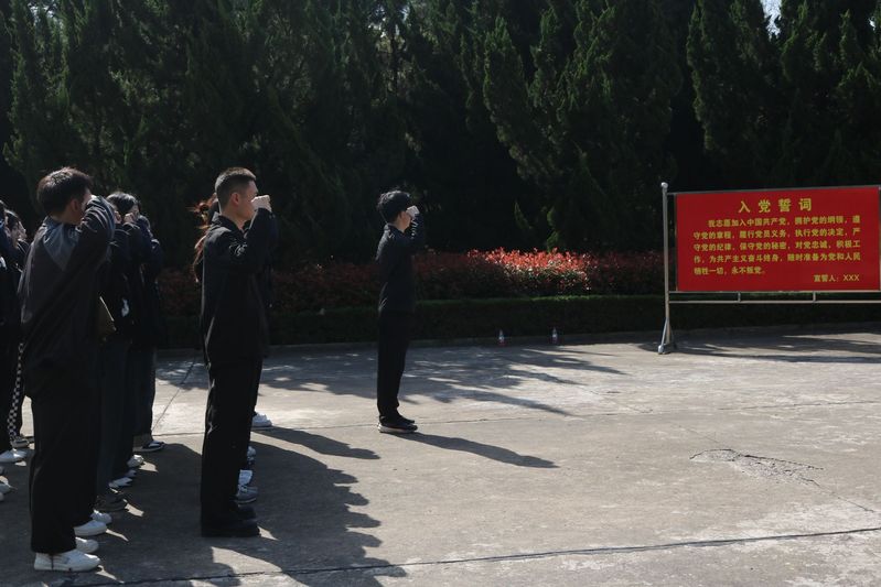祭扫活动后,学院学生会轮值主席、学生第二党支部党员陈佳豪带领学院全体党员同志在烈士陵园广场重温入党誓词。