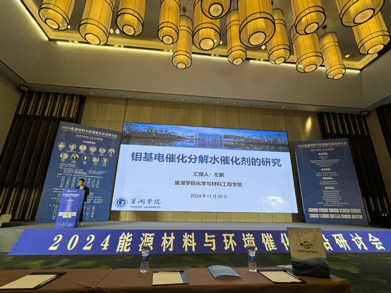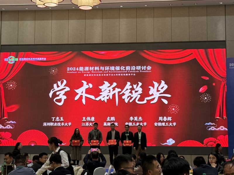 我校化材学院左鹏老师在分会场一中作题为“钼基电催化分解水催化剂的研究”的学术报告,受到在场学者的广泛关注,并获得学术新锐奖项。