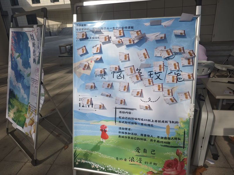 学院学生会结合“12·5”心理健康服务月活动内容,开展“以烦恼 换玫瑰”、 绿植领养、“心灵之叶 以叶作画”、心理月“室外趣味运动会”以及“室外趣味运动会”等活动,既促进学生走出情绪内耗,告别焦虑,又帮助学生坦然面对负面情绪,认真享受当下的生活,更好地把握生活的节奏。