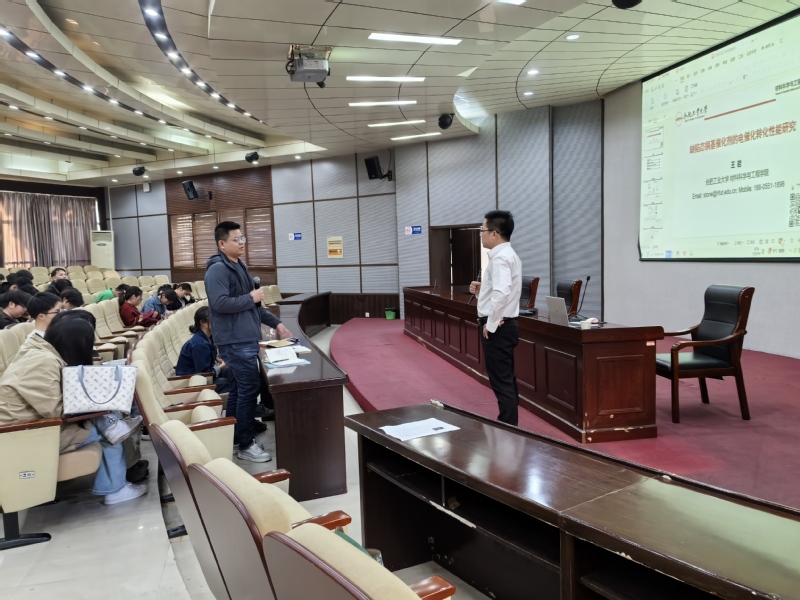 在交流互动环节,现场师生就催化剂稳定性调控、缺陷工程优化策略等关键科学问题展开深入探讨。王岩教授结合具体研究案例,从实验设计、表征技术到理论分析等多个维度进行细致解答,并对青年学者的科研方向提出建设性建议。