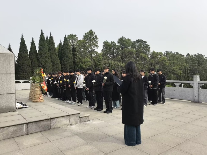 烈士陵园松柏苍翠,庄严肃穆。上午9时,全体成员整齐列队,在革命烈士纪念碑前肃立默哀,深切缅怀革命先烈。全体党员在纪念碑前重温入党誓词,铿锵有力的誓言回荡在陵园上空。肃立默哀忆忠魂,鲜花一束寄深情,同学们依次向长眠于此的烈士敬献鲜花并鞠躬致敬,朵朵白菊寄托着对先烈们的无限哀思与敬仰。