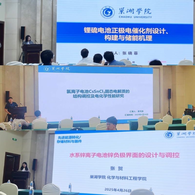 我院张晓菲、夏天辰、张贺三位博士在分会场十九中作题为“锂硫电池正极电催化设计、构建与储能机理”、“氯离子电池CsSnCl3固态电解质的结构调控及电化学性能研究”、“水系锌离子电池锌负极界面的设计与调控”的学术报告,与参会专家学者进行了深入的学术交流,共享最新研究成果,受到在场学者的广泛关注。