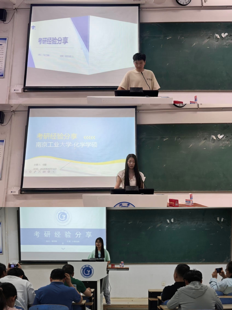 被南京邮电大学、中国矿业大学和南京工业大学录取的三名考研标兵代表:21无机非班夏思敏、21化工班张驰和21应化班纪蕊分别从院校选择、复习规划、应试技巧、心理调适等多个维度分享了他们的考研成功经验。为26届考研学子提供了宝贵的备考思路和方法借鉴。