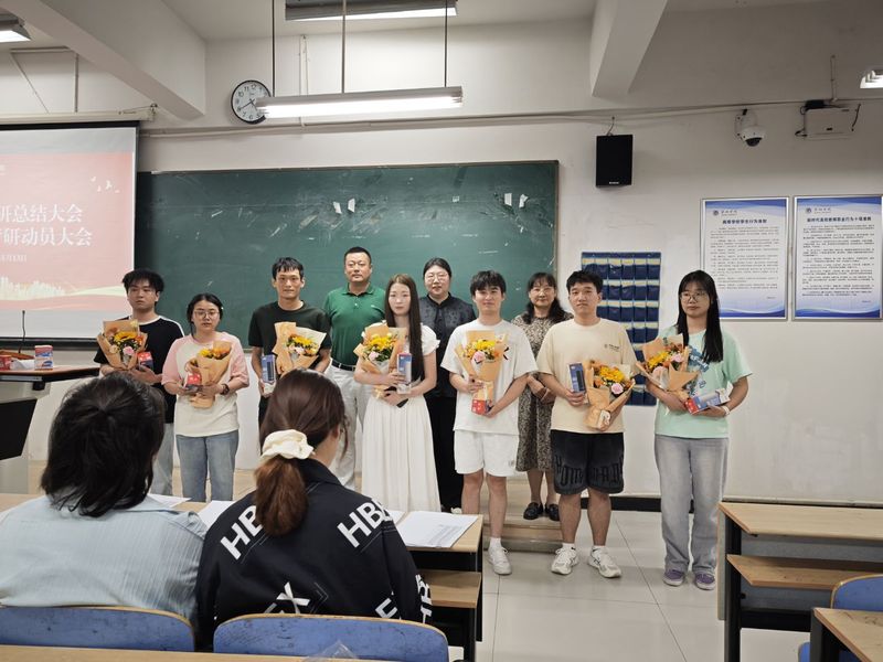 副院长李宏林全面总结了学院2025届考研工作情况。她指出,经全院师生的共同努力,在2025年全国硕士研究生招生考试中,学院应届毕业生共有34人成功升学,分别录取至合肥工业大学、东华大学、南京师范大学、安徽大学、北京科技大学、浙江工业大学等高校。学院领导班子向25届优秀考研标兵代表赠送了鲜花和纪念品,向同学们表达祝贺与祝福之情。