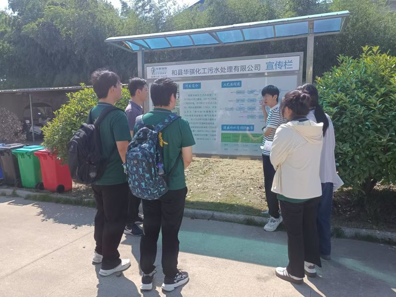 安徽省精细化工产业基地采用“一区多园”模式,划分生产区、仓储区、污水处理区等功能板块。以医药及中间体、新料和环保型助剂为主要产业发展方向,工业废水采用“预处理+园区集中处理”模式。随着基地入驻企业的迅猛发展,园区废水排放量显著增加,同时废水成分也日趋复杂。“碧水清渣”行动专注工业排放治理这一关键课题,团队出发前深入学习工业废水相关处理办法,研读学习污水处理厂工艺流程、排放标准和监测方法。