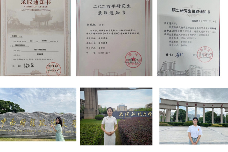 20%左右(2025年升学率为25.64%)的国贸专业毕业生进入中南财经政法大学、安徽大学、辽宁大学、宁波大学、云南大学、华南师范大学、安徽财经大学、上海对外经贸大学等高校继续攻读硕士学位,获得更高的起点和平台!
