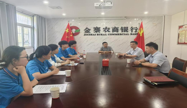 共话金融策,同绘振兴图。在金寨农商银行汤家汇支行,银行工作人员热情邀请了实践团开展座谈,共话金融赋能乡村发展的创新路径。座谈会上,汤家汇支行行长分享了农商银行扎根乡土、服务三农的生动实践:从推出特色惠农信贷产品,为农户发展种植养殖、创办家庭农场提供资金支持,到搭建金融服务站,让村民足不出村就能享受便捷的金融服务,继而探索“金融+产业”模式,助力当地特色农产品加工、乡村旅游等产业发展壮大。