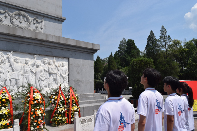 实践团走进金寨红军广场,在革命烈士纪念塔前敬献花篮、鞠躬致敬。在金寨县烈士纪念馆,一幅幅泛黄的照片、一件件锈迹斑斑的实物,诉说着金寨儿女为革命胜利浴血奋战的英雄事迹。“10万金寨儿女参加红军,仅幸存1.2万人,他们用生命诠释了初心使命。”讲解员的话语让团队成员深受触动。