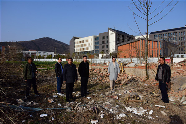为进一步推进校园扩建项目,做好征地拆迁“后半篇”文章,3月7日下午,校党委书记周峰、副校长黄志圣在办公室、后勤处等部门负责人陪同下,亲临拆迁现场,实地巡查指导校园征地拆迁与基本建设工作。