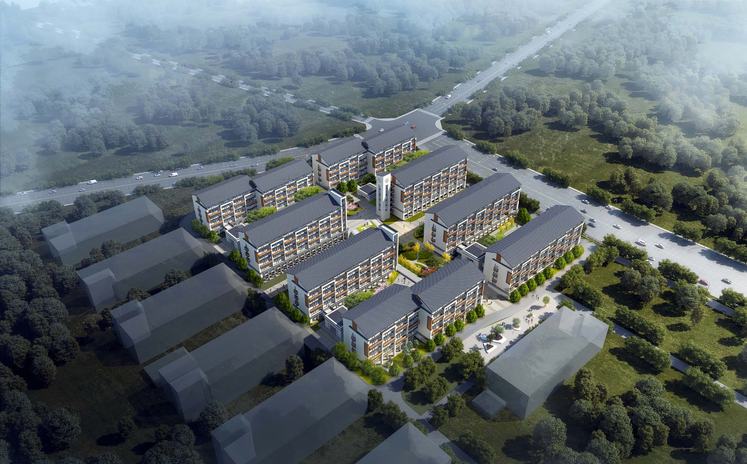 学生公寓组团项目位于学校东北角新征地块,占地面积约45.82亩,建设8栋学生公寓,总建筑面积为56763平方米,按4人间标准设计,共计1251间,可容纳近5000名学生入住。