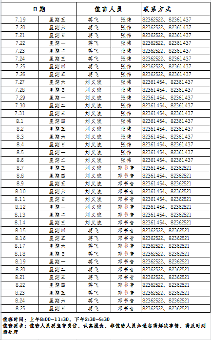 2024年基建办暑期值班表