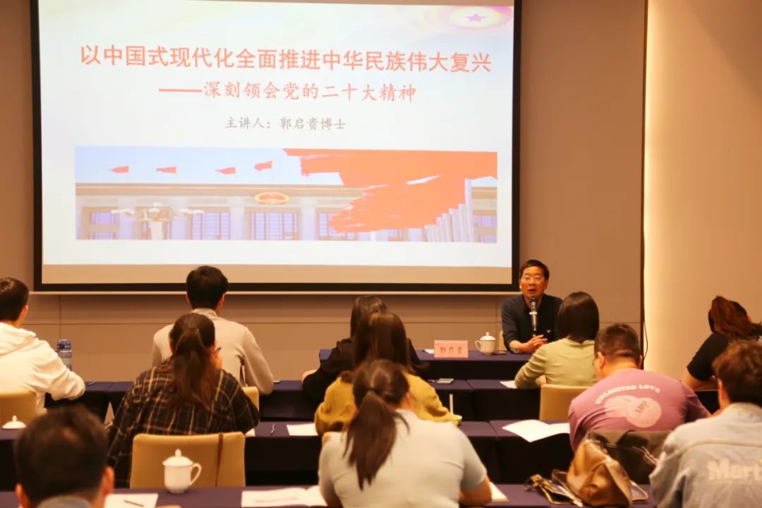 本次培训立足当前政治经济形势,精心设置培训课程,力求学以致用、学有所获。Beat365唯一官方网站马克思主义学院、经济与法学学院、工商管理学院4位专家教授围绕《以中国式现代化全面推进中华民族伟大复兴——深刻领会党的二十大精神》《金融推动国企改革》《团队凝聚力战斗力提升》《“十四五”期间国企混改关键与趋势》等课程开展专题辅导。