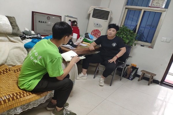 经过事先约谈,团队成员们于7月13日如约见到了“花鼓戏”的传承者们。成员们与传承者们就“花鼓戏”近几十年的发展进行密切交流,其中团队成员郑国风通过对“花鼓戏”传承人周玉玲老师的专访,了解到:花鼓戏于2008年被列为国家非物质文化遗产,是艺术园林的瑰宝。花鼓戏的曲风在全国种类众多,然而淮北的花鼓戏有其独特的地方,其中主要体现在花鼓戏的唱腔,即“大长接小巧,流转接地气,吐字清晰”。