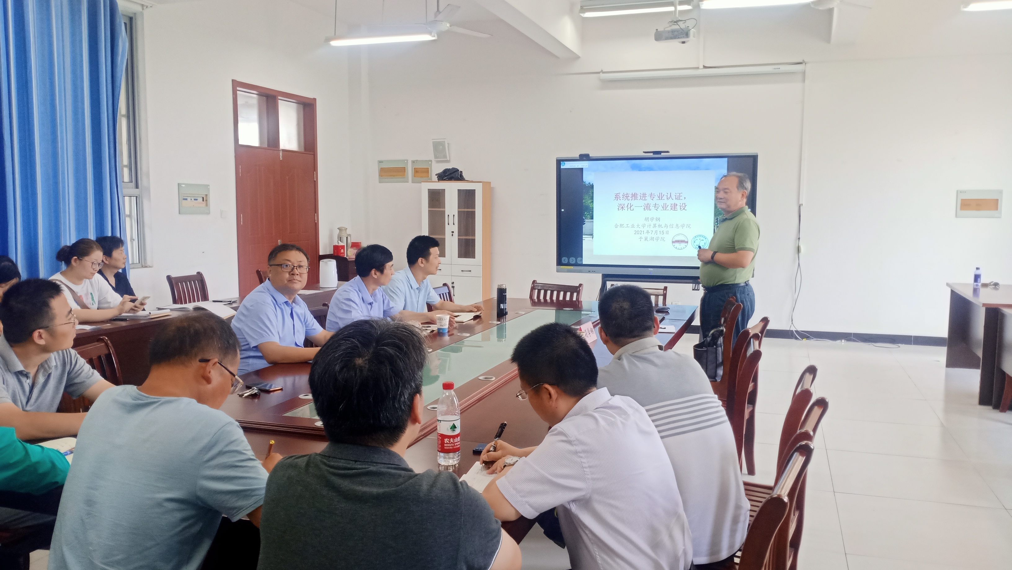 为进一步推进一流专业建设,做好工程教育专业认证工作,715日,信息工程学院在学院会议室召开一流专业建设与工程教育专业认证研讨会。会议邀请了教育部工程教育认证专家、合肥工业大学计算机与信息学院胡学钢、王浩两位教授做专题指导。教务处副处长谢如龙、学院副院长吴其林及专业课老师参加研讨会,郑尚志院长主持会议。