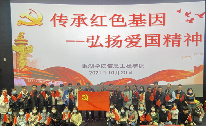 为进一步推动党史学习教育走深走实,庆祝建国72周年,激发师生党员的爱党爱国热情,10月20日,信息工程学院党委组织师生党员观看了爱国电影《长津湖》。本次活动由信息工程学院党委书记陈士群带队,信息工程学院全体师生党员参加。