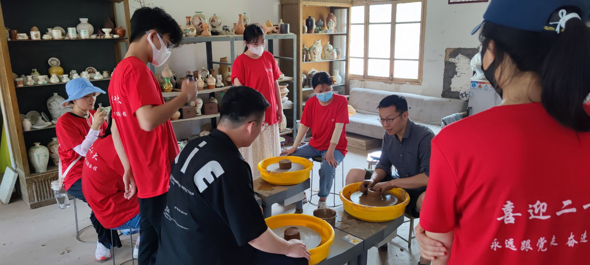 在工作人员的指导下,团队成员亲手制作了陶坯,体验了制作陶瓷的过程。