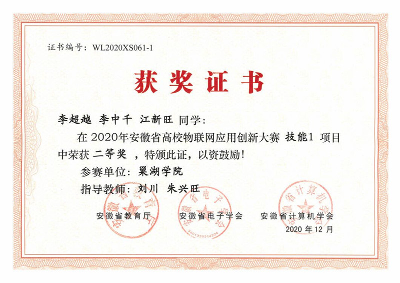 2020年安徽省高校物联网应用创新大赛二等奖